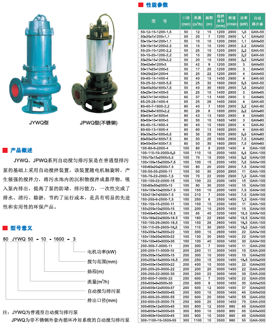JYWQ、JPWQ系列自动搅匀排污泵